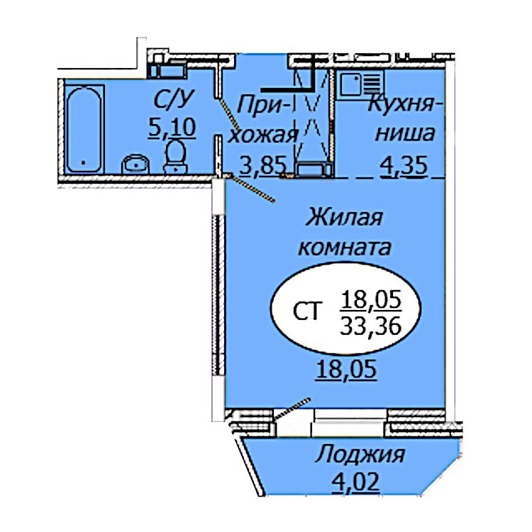 Студия 33.36 кв.м в ЖК Комета-Октябрьский
